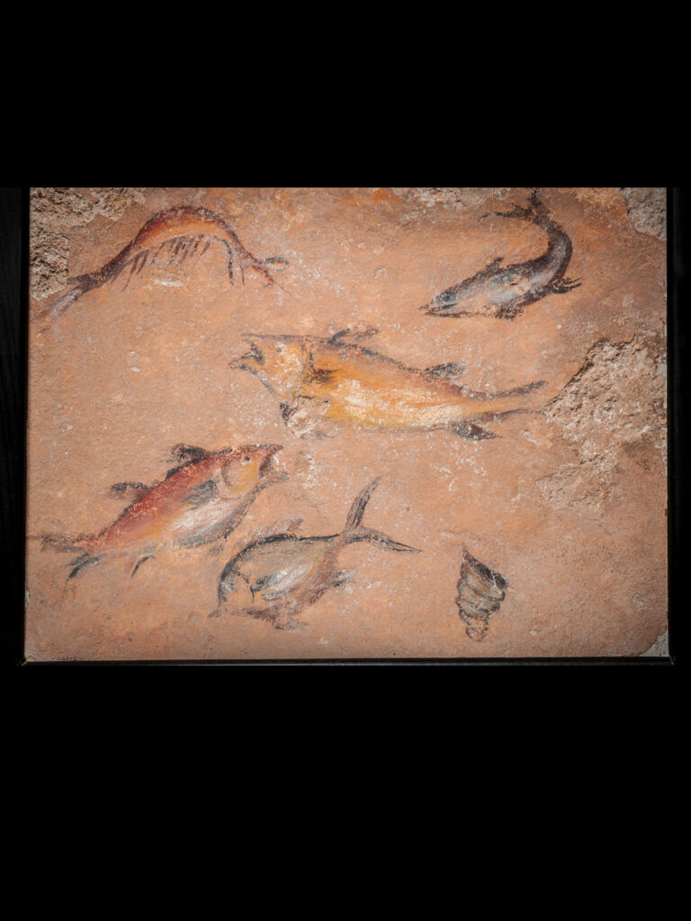 Roman Pompeian Wall Fresco with Aquarium-like Swimming Fish