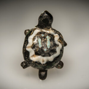 Bronze wine Phiale bowl from the Achaemenid period, circa 500 BC, dating to the time of Ezra and Nehemiah. This elegant vessel is crafted from bronze and measures approximately 16 cm in diameter. It features a shallow, broad form typical of Phiale bowls, with a gently flared rim that enhances its functional and decorative appeal.