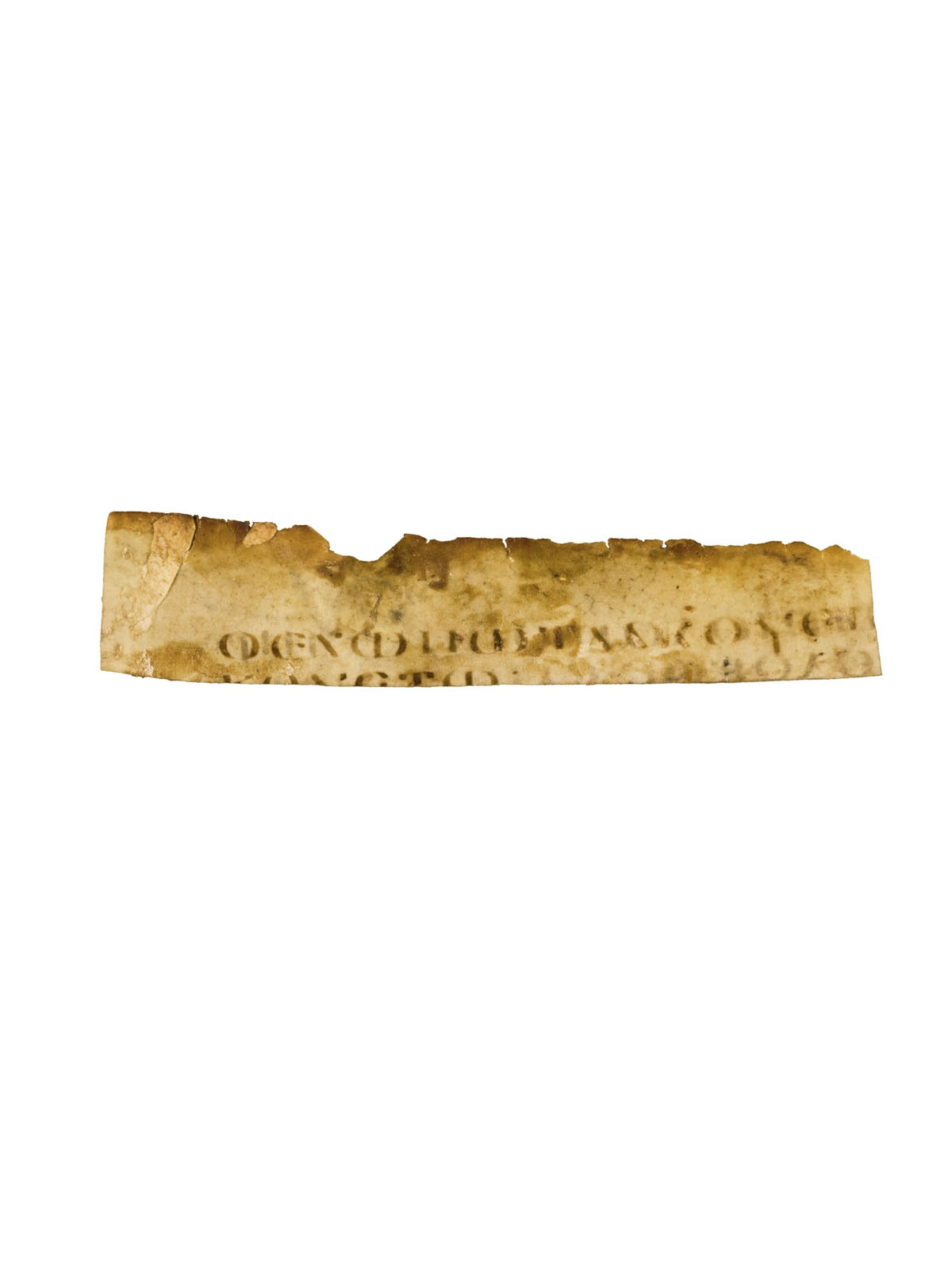 This is an extremely early and important witness to the Gospel of Mark, written within decades of the death of Jerome and Augustine of Hippo; it is perhaps from the Imperial library of Constantinople, the last of the great libraries of the ancient world This manuscript is from an important cache of early fragments, discovered in 2003, and reported to have been from a pre-War Armenian collection of antiquities and manuscripts in France. Five Biblical fragments, including the present one, were published by P.M. Head in the Journal of Theological Studies, ns.59 (2008), with short earlier notices in TC: A Journal of Biblical Textual Criticism, 8 (2003), Bulletin of the International Organization for Septuagint and Cognate Studies, 36 (2003) and the Tyndale Bulletin, 56 (2005). They include fragments of Luke (fifth century, and probably the oldest witness to that part of the text), John (late fifth century or even c.500), another fragment of Mark (fifth to sixth century) and Romans (sixth or seventh century). Subsequently, the other fragments have been identified as the oldest extant witness to the Lucianic recension of Jeremiah in Greek (early to mid-fifth century: Head ibid., pp.1-11), the only surviving witness to the Greek original text of the Testamentum Domini Nostri Jesu Christi (fifth century: Corcoran and Salway in Journal of Theological Studies, ns.62 (2011) pp.118-35), and the only surviving fragments of a series of imperial edicts made by third-century emperors and now named the Fragmenta Londiniensia Anteiustiniana (fifth century: Corcoran and Salway in Zeitschrift der Savigny Stiftung für Rechtsgeschichte: romanistische Abteilung, 127 (2010) pp.677-8, and Roman Legal Tradition, 6 (2010). Clearly these fragments of six early Bibles, a pseudo-Apostolic Church Order, and records of imperial edicts were once in a large and important library of the ancient world, in scope and chronological range far beyond that of a wealthy individual. There were large institutional libraries in Upper Egypt (such as that of the monastery founded by Pachomius c.320), Roman North Africa (as used by Augustine of Hippo in the late fourth and early fifth century), Milan (as used by Ambrose in the late fourth century) and Alexandria (as used by Bishop Gregory of Alexandria in the mid-fourth century), but the Eastern Empire was increasingly centred on Constantinople as its outlying territories fell prey to barbarian invasion. Jerome notes that the Lucianic recension of the Septuagint (including the fragment of Jeremiah noted above) was current only in Constantinople and Antioch in the early fifth century, and the collection of imperial edicts has been tentatively identified as also coming from the city. If so, it seems likely that they come from the Imperial Library in Constantinople, founded by Emperor Constantius II (reigned 337-61) as a scriptorium with the express purpose of copying fragile papyrus documents onto more stable vellum. Under Emperor Valens in 372 it employed four Greek and three Latin scribes. It survived a fire in 473, was sacked by the Normans in 1204 during the Fourth Crusade, and eventually destroyed only after the conquest of the city by the Ottoman Empire in 1453. The only other manuscript thought to be from this source is that of the Archimedes Palimpsest, which surfaced first in Constantinople in 1840 and is now in a private collection in America.