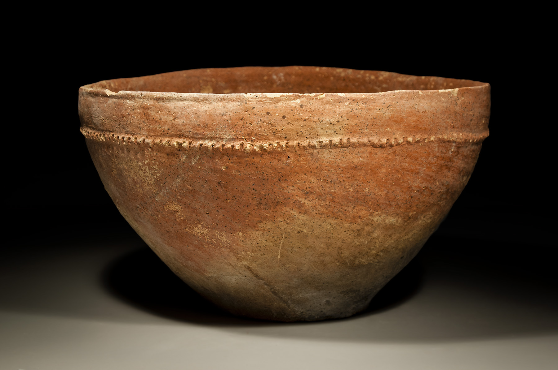 A large red slip Canaanite bowl with incised collar