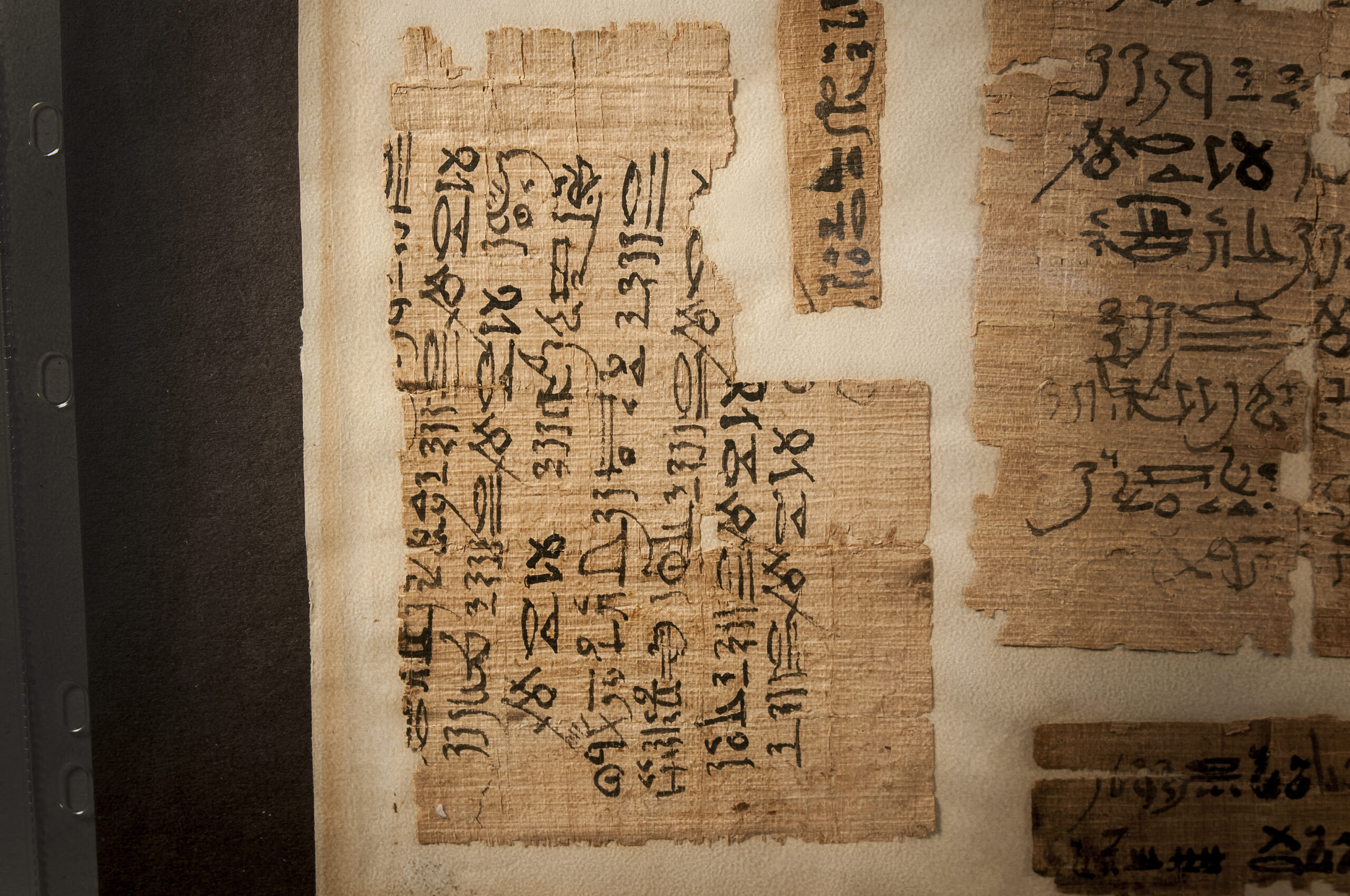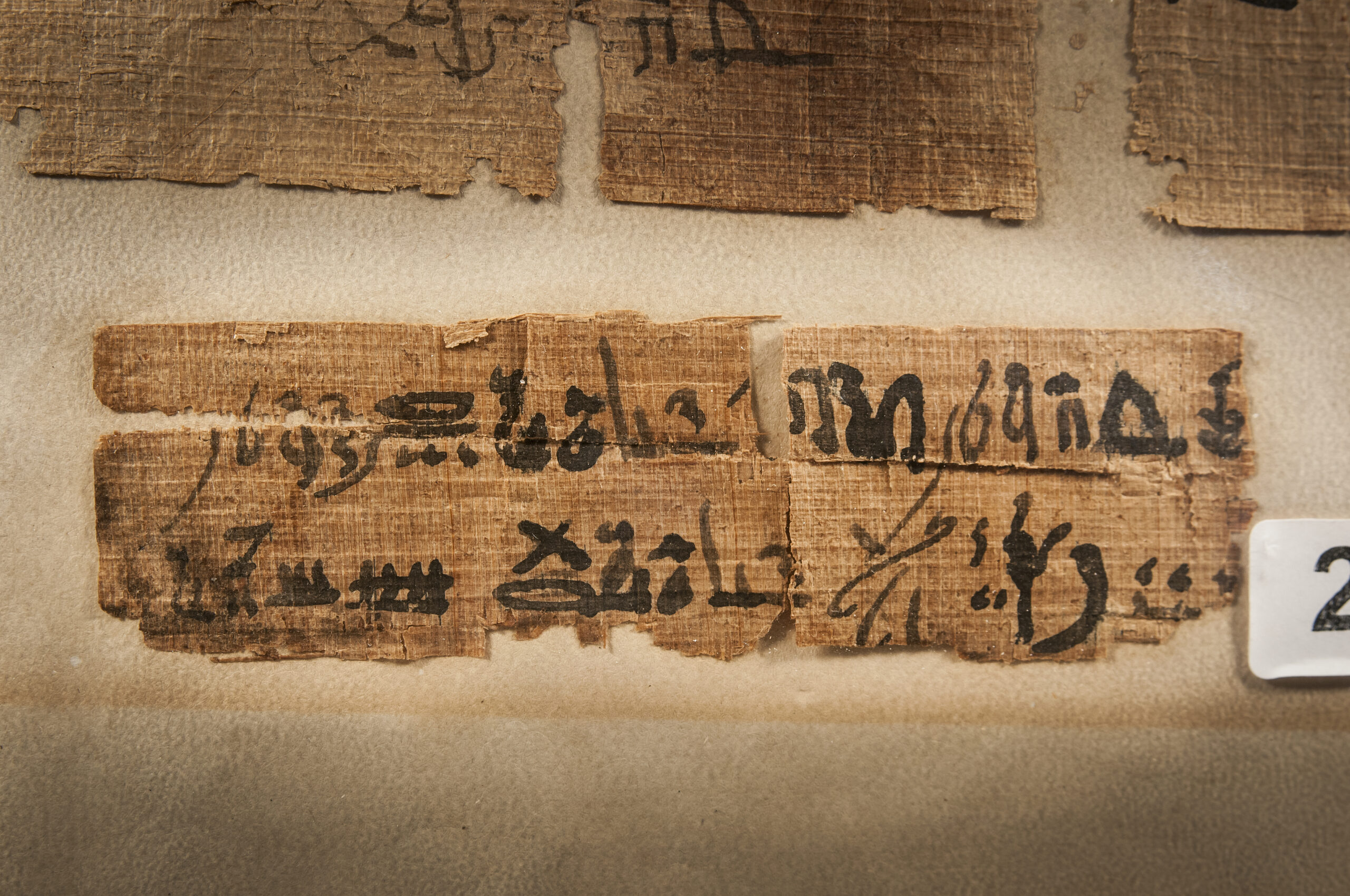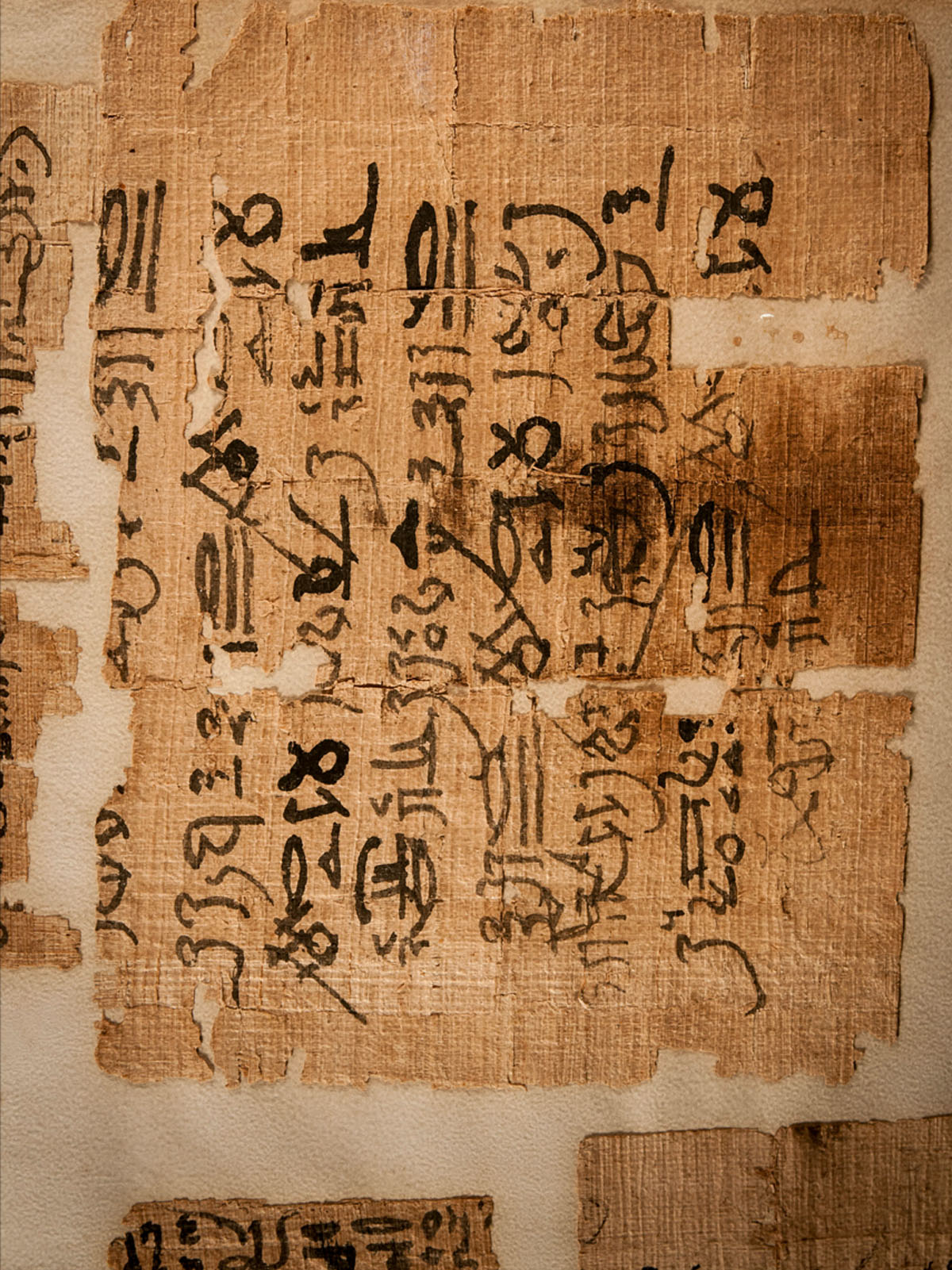 Featured here are several papyrus fragments of the Egyptian Book of the Dead from Egypt’s Ptolemaic Era (305 – 30 BCE). Examining Egyptian art during these 300 years reveals strong continuities in its traditions but also interactions with Greek art, whose forms and styles swept the world with Alexander’s armies. The encounter of the two cultures had many aspects and phases, and is easiest to comprehend by looking first at the new ruling class, its involvements and concerns, and then at religion and the arts in the greater land of Egypt.