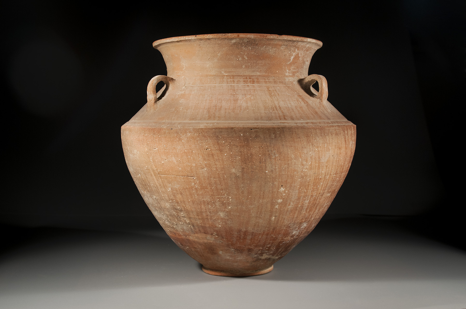 A Phoenician triple handled red slipped amphora with radial pattern burnish